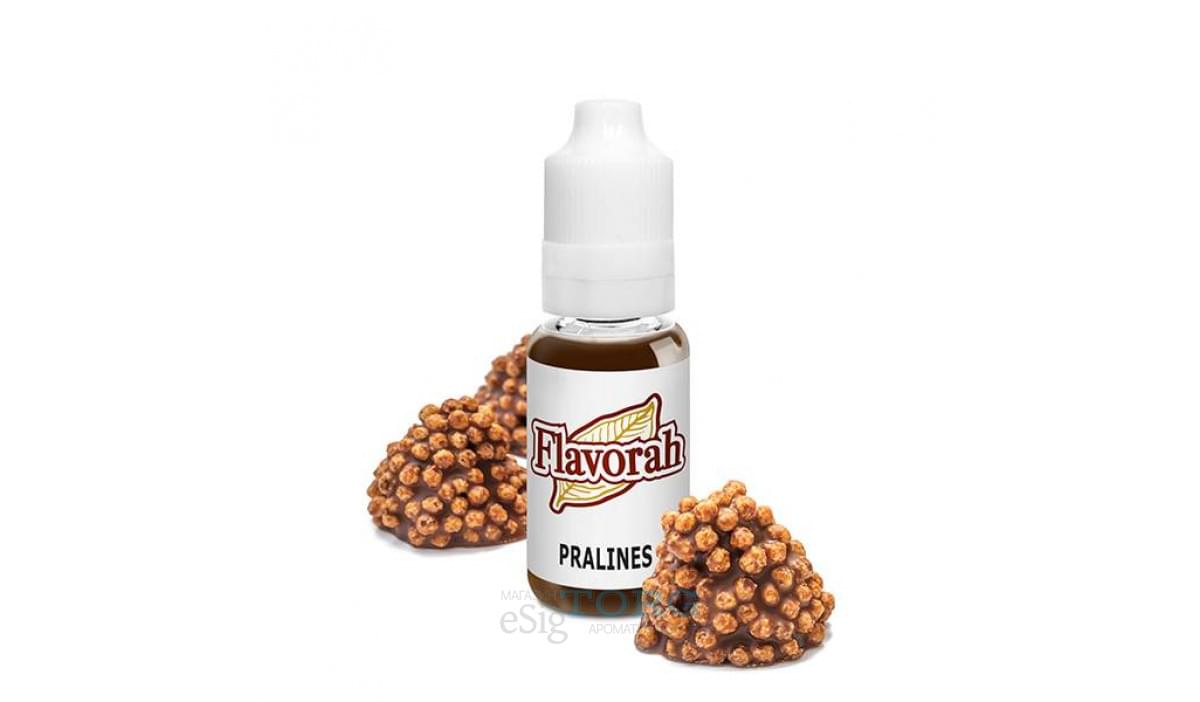 Pralines Flavorah — аромат пралине, сладкой ореховой смеси. Во вкусе: орехи, сахарная сладость, карамельные ноты. Это отличная основа для кондитерских замесов. Арому Pralines FLV следует смешиваяать в минимальной концентрации. Оптимальные дозировки: от 2 до 3% (соло) и от 0,1 до 1% (в рецептах).